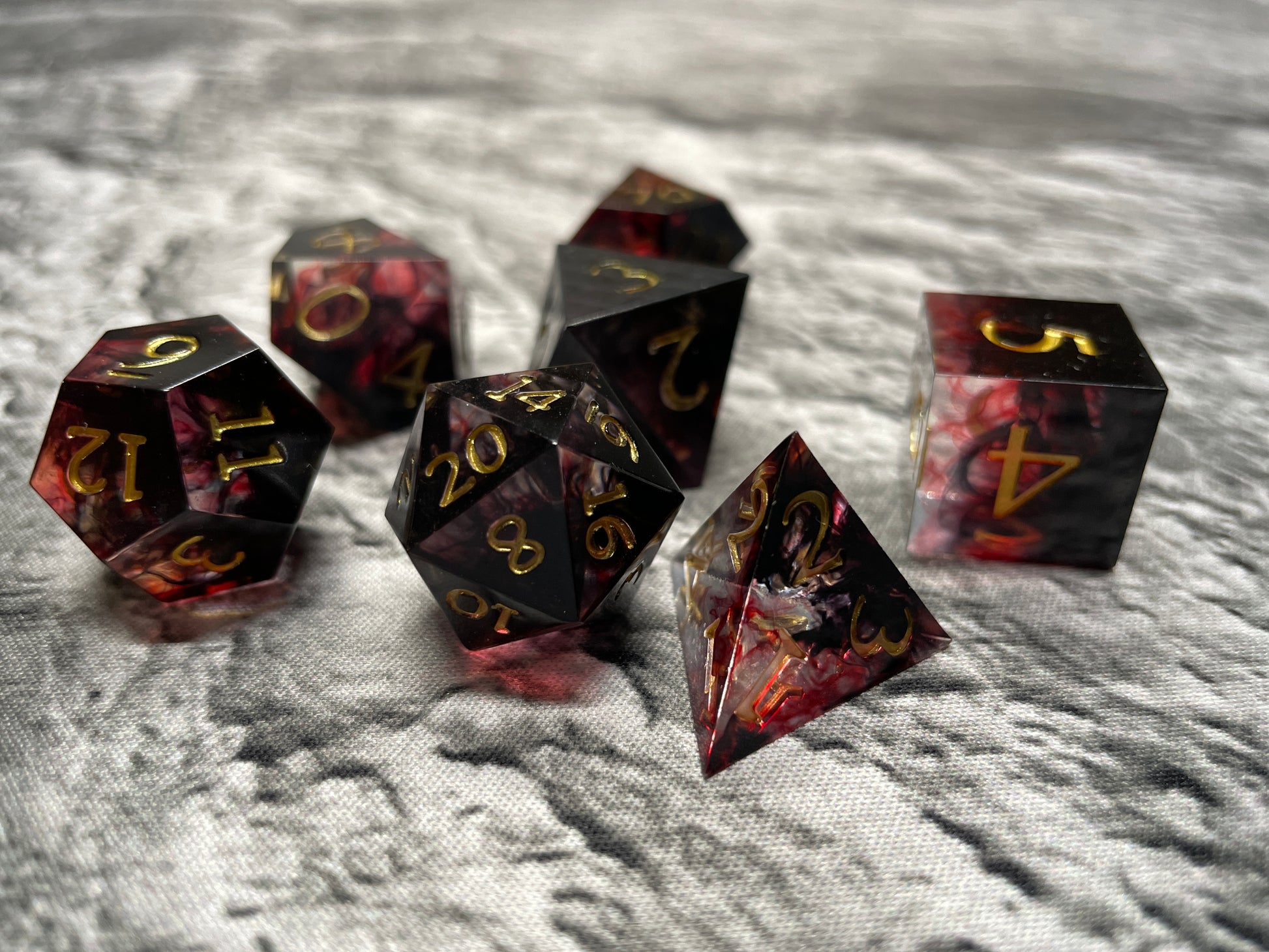 Made by the Hungry Barbarian himself these dice are unique blend of colors. Each 18mm polyhedral set comes with 7 dice (d4, d6, d8, d10, d10 (00-90), d12, and d20).
