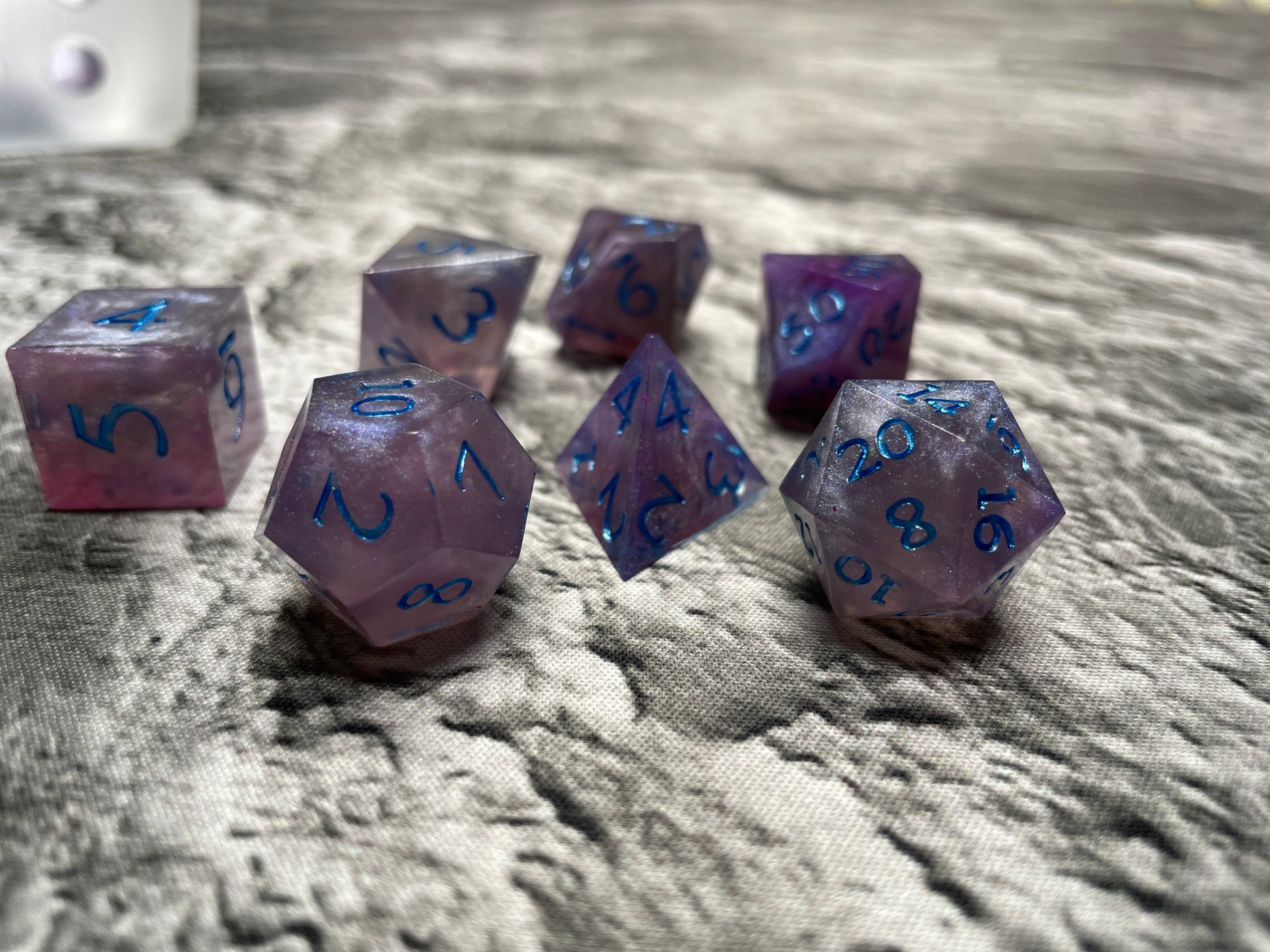 Made by the Hungry Barbarian himself these dice are unique blend of colors. Each 18mm polyhedral set comes with 7 dice (d4, d6, d8, d10, d10 (00-90), d12, and d20).