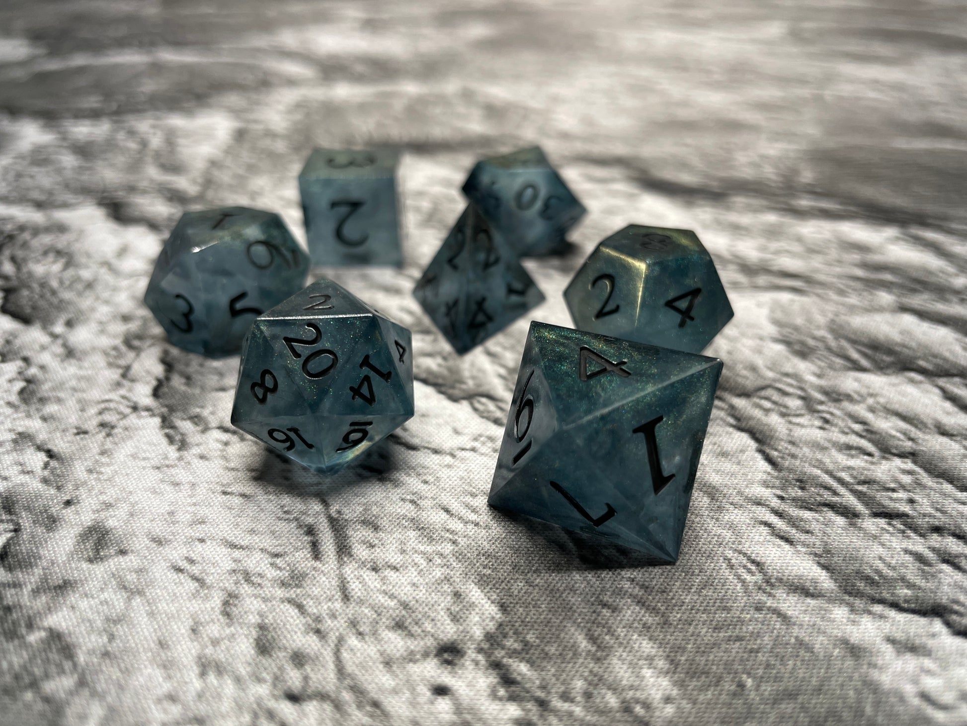 Made by the Hungry Barbarian himself these dice are unique blend of colors. Each 18mm polyhedral set comes with 7 dice (d4, d6, d8, d10, d10 (00-90), d12, and d20).